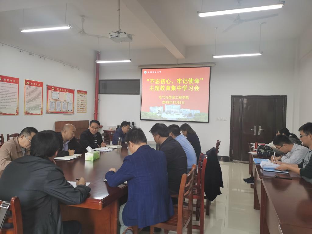 114日下午,电气博彩 党委在电气楼304会议室召开“不忘初心、牢记使命”主题教育集中学习会。博彩 领导班子成员、党委委员、支部书记、科级干部等参加会议。院党委书记叶凤华主持会议。