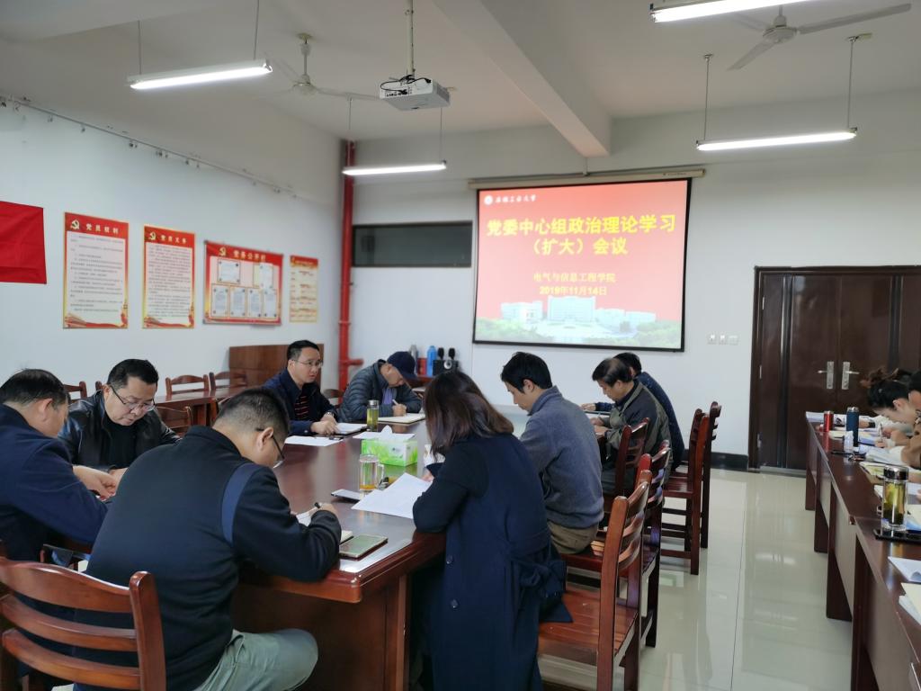 1114日上午,电气博彩 党委中心组在电气楼304会议室召开政治理论集中学习(扩大)会议。博彩 领导班子成员、党委委员、党支部书记、系室中心主任、科级干部、工会主席全体辅导员等参加会议。院党委书记叶凤华主持会议。