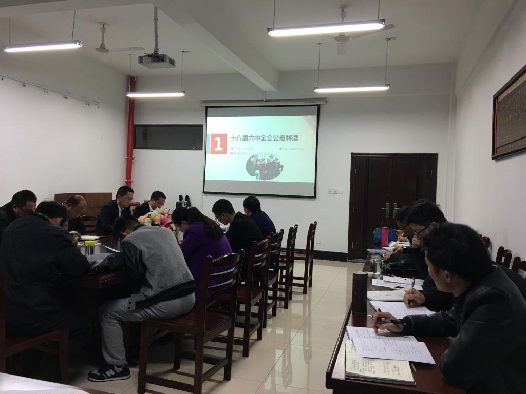 叶凤华在重点传达学校党委书记刘新跃在学校专项巡视反馈意见整改动员会上讲话精神后,带领全体同志学习《中国共产党第十八届中央委员第六次全体会议公报》,并对六中全会精神以及全会审议通过的《关于新形势下党内政治生活的若干准则》、《中国共产党党内监督条例》进行了认真解读。叶凤华希望博彩
