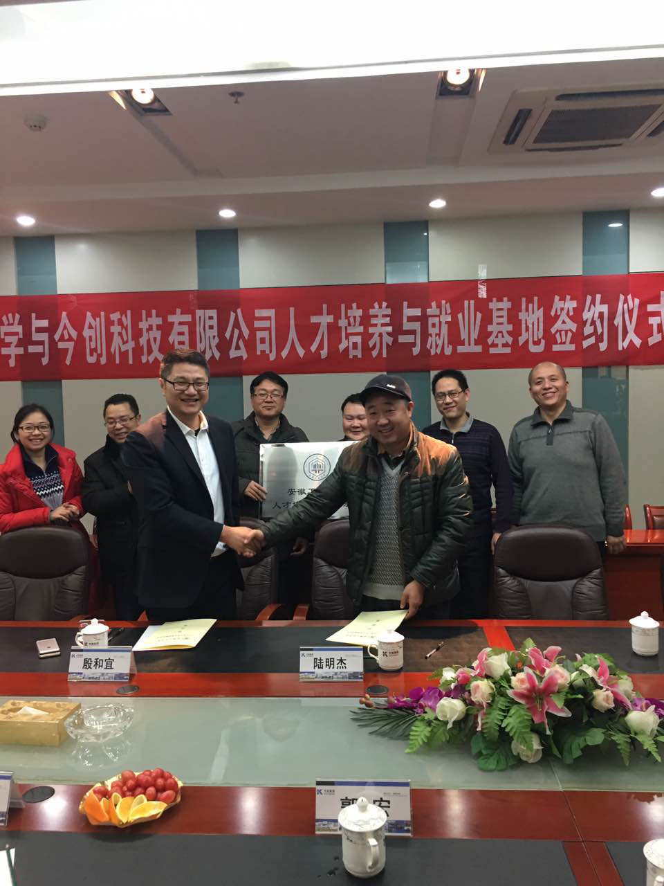 与今创科技有限公司人才培养与就业基地揭牌仪式,和企业负责人签订了《博彩