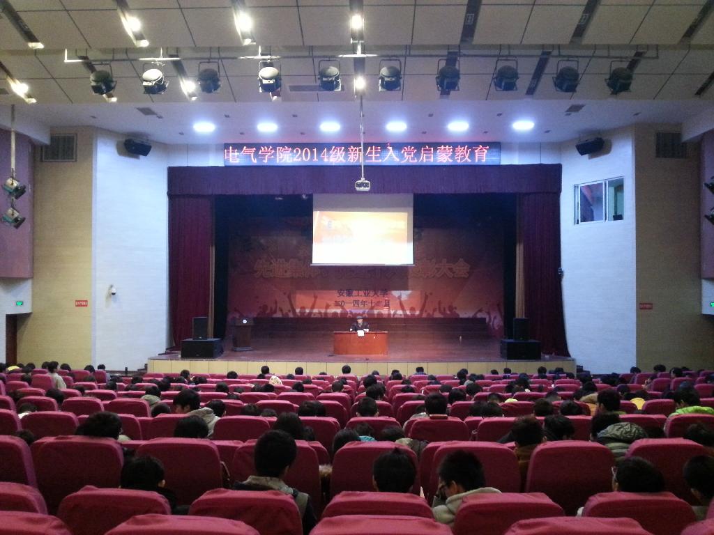 于2014年12月8日晚上在大学生活动中心开展新生入党启蒙教育,活动由关工委陈贵棠副主任主讲,博彩