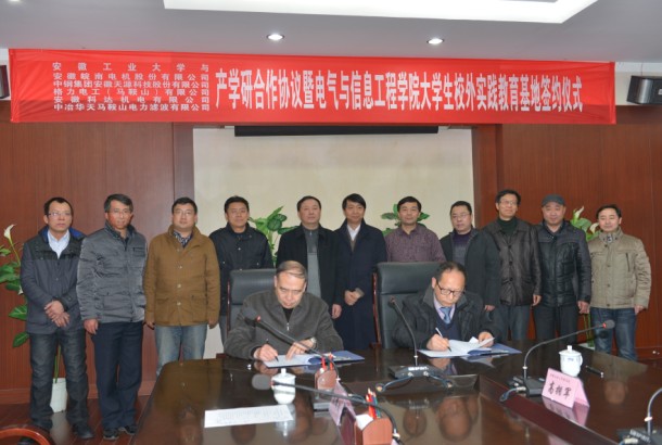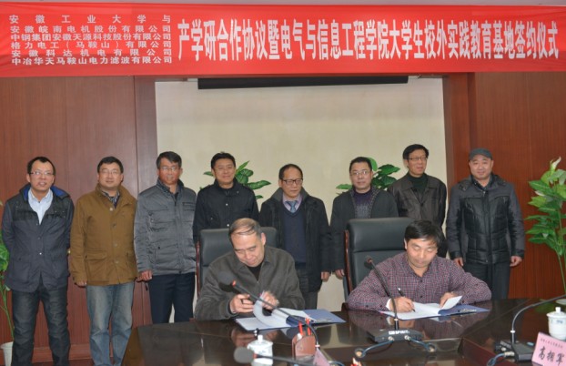 大学生校外实践教育基地签约仪式在我校佳山校区会议中心举行,马鞍山市经济和信息化委员会副主任王黄来,安徽皖南电机股份有限公司等五家知名企业的领导,我校副校长葛芦生、教务处等相关职能部门负责人,电气博彩