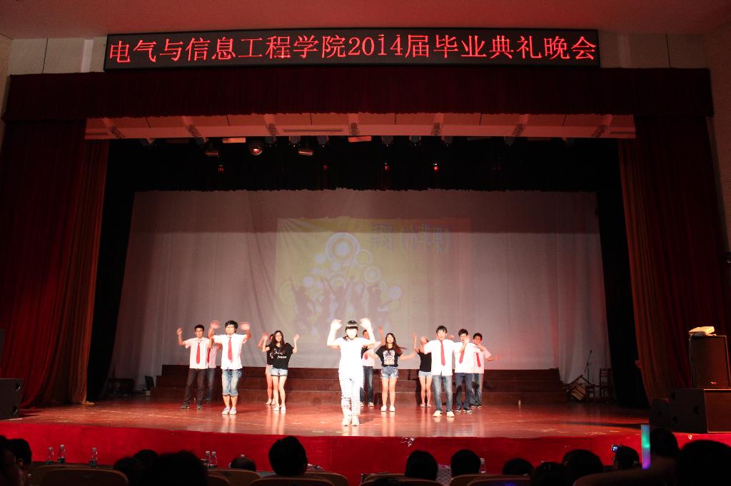 的毕业季品牌活动之一,旨在为毕业生提供一个感恩母校、互道离别、讲述不舍深情的舞台。毕业典礼使即将步入社会的毕业生们再一次感受到集体的温暖,并给予了他们无限的期望和不竭的动力。文艺演出凝聚了院领导、老师和同学对即将离校的2014届毕业生的祝福,也充分体现了毕业生对母校的眷恋情深。祝愿电气学子满载着期冀与祝福起航,在新的人生旅程中乘风破浪、再创辉煌!(撰稿:李冉;审核:郭宏)