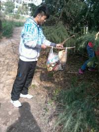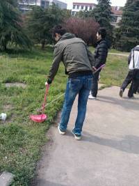 2013年4月8日下午两点钟,仪122班同学携带着准备好的扫把、垃圾袋、垃圾桶、铲子等工具先在阶梯教室下集合,怀着饱满热情的情绪步行来到荟灵湖。活动总共进行了一个半小时,过程中同学们不怕脏,不怕累,对湖边路上的丢弃垃圾做了细致的清理,对湖里漂浮的塑料袋等也利用各种工具进行了打捞清除,特别是荟灵湖边行人随处丢弃的口香糖等难以清扫的污浊,也购买了专用的铲子进行了挖掘清理。一些路过荟灵湖的行人,看到同学们辛苦的样子,还主动参与到了清扫垃圾的活动中来。