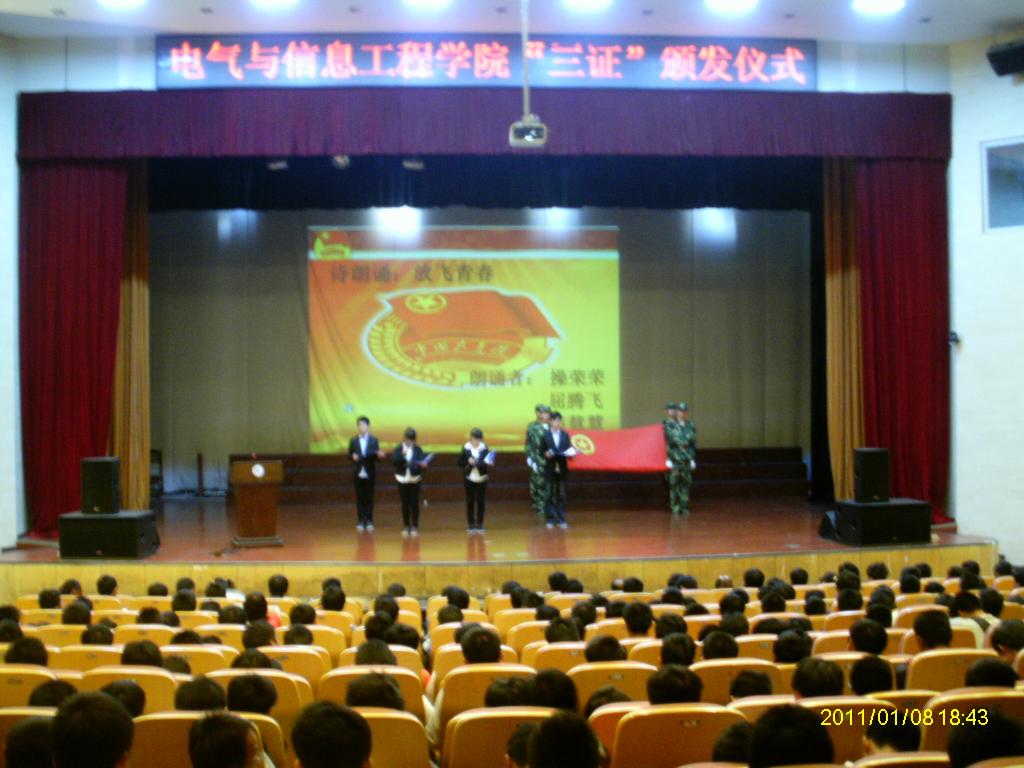 在大学生活动中心举行了2013级新生“三证”颁发仪式,仪式由院团委书记张满堂主持,院党委副书记、副院长郭宏、各年级辅导员、博彩