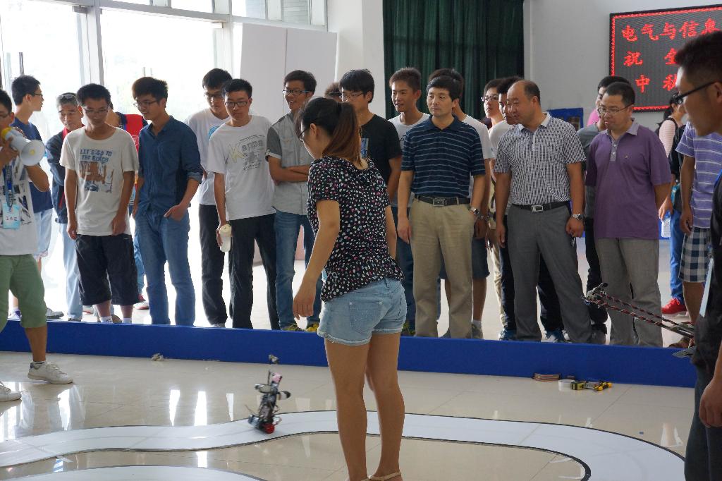 展览现场,精巧的智能车在黑白相间的赛道飞速行驶,活泼可爱的机器人在展台跳着动人的舞蹈,“萌宠”似的灭火器圆满地完成了自己的任务,琳琅满目的科技制作陈列以独特的造型,实用的功效吸引了众多师生前来参观。作品创作者为大家进行现场解说,并进行现场模拟演示作品功用。很多同学都由衷地发出感慨,觉得“牛人就在身边”。本次展出的科技创新作品,都是博彩
