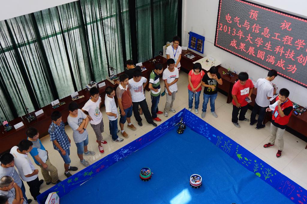 首届大学生科技创新成果展在电气楼一楼大厅成功举办。近几年在各级各类竞赛中获奖的部分大学生科技创新作品参加了展出。