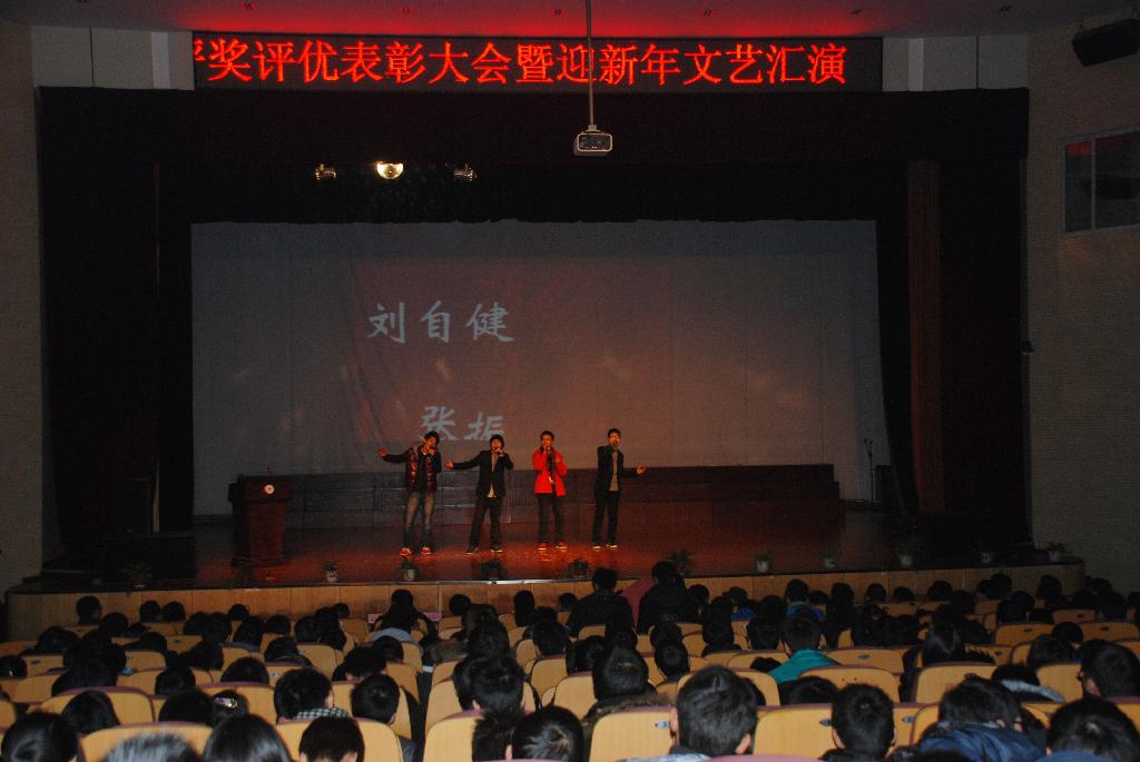 2011-2012学年度学生评奖评优表彰大会暨迎新文艺演出在东区新大学生活动中心隆重召开,校学工部姚敏部长,电气信息博彩