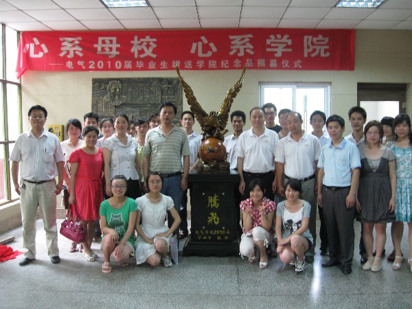 领导和毕业生代表共聚一堂,举行2010届毕业生赠送母校纪念品揭幕仪式。为了回报母校四年的养育恩情,博彩