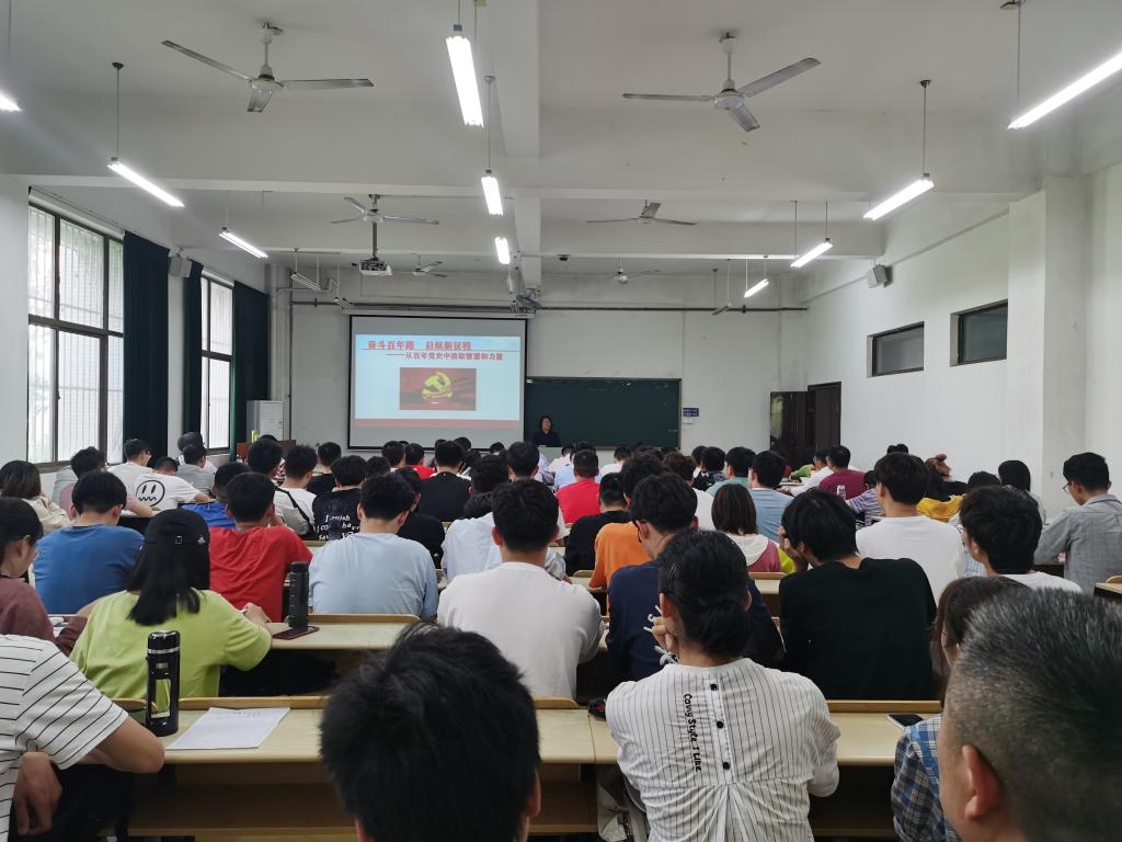 师生党员作“举旗帜、送理论”建党百年专题宣讲,宣讲会由电气博彩