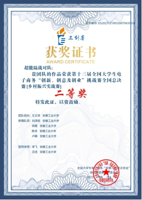 团队自赛事细则公布以来,在我校三创赛相关负责人的指导下,师生携手、积极备赛。经过校赛、省赛层层选拔,在总决赛中与来自西安交通大学、对外经济贸易大学、中央民族大学、湖南大学等全国119所高校的专家学者和135支参赛团队同台竞技,最终取得了优异的成绩。(撰写:王文泽,李飞;审核:李冉,程木田)
