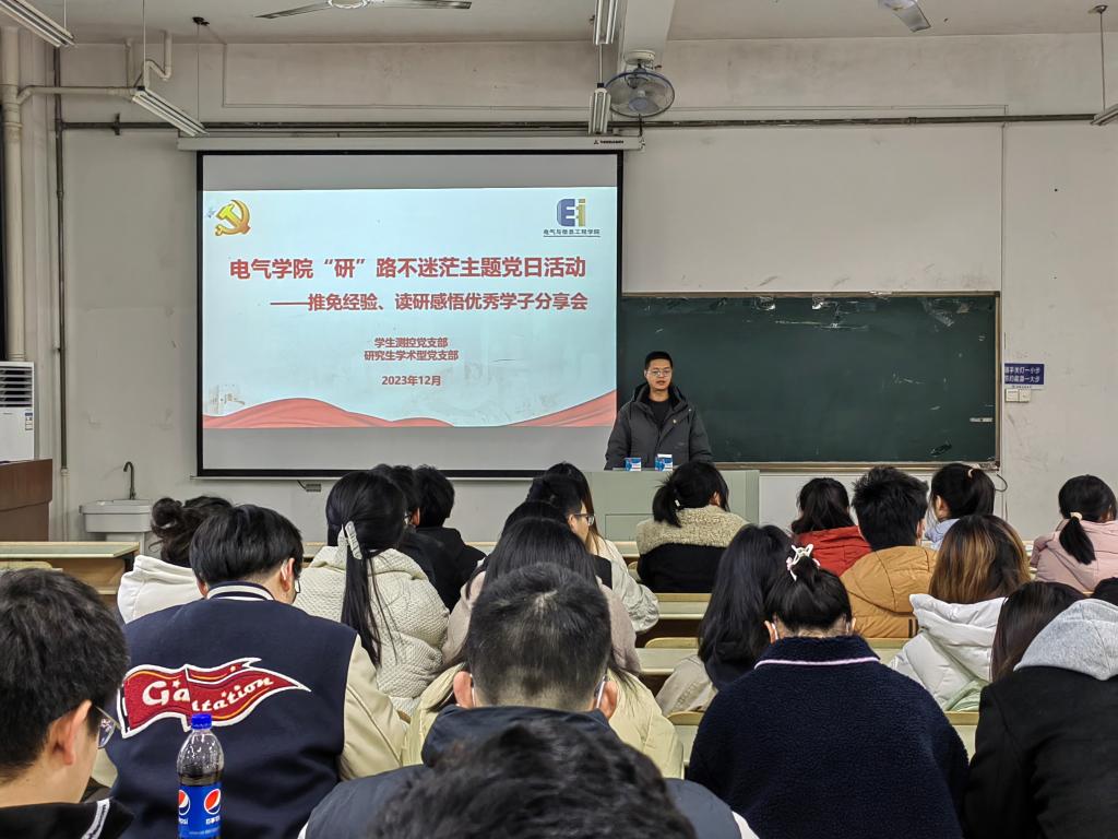 学生测控党支部联合研究生学术型党支部在电气楼112开展“‘研’路不迷茫”主题党日活动。活动由学生测控党支部书记、2022级辅导员杨恒基主持,学生测控党支部党员代表、入党积极分子和部分学生参加。