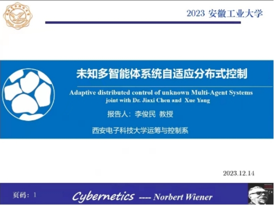 李俊民教授首先以控制论的起源和发展给大家做了生动有趣的开场,介绍了控制论的创始人美国数学家维纳教授的生平及学术研究成果;详细介绍了多智能体系统的不精确通信拓扑结构,提出一种模糊联合连通的概念,对一类不精确通信拓扑的多智能体设计分布式一致性控制协议,给出其达到渐近一致性的条件。会上,李俊民教授与博彩