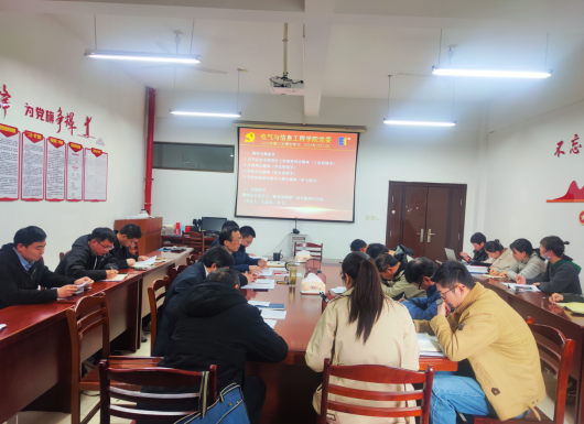 会上深入学习了习近平总书记在全国两会期间的重要讲话精神和全国两会有关精神,学习传达了学校双代会精神以及校党委常委、副校长王先柱在学校师德师风建设专题会上的讲话精神。