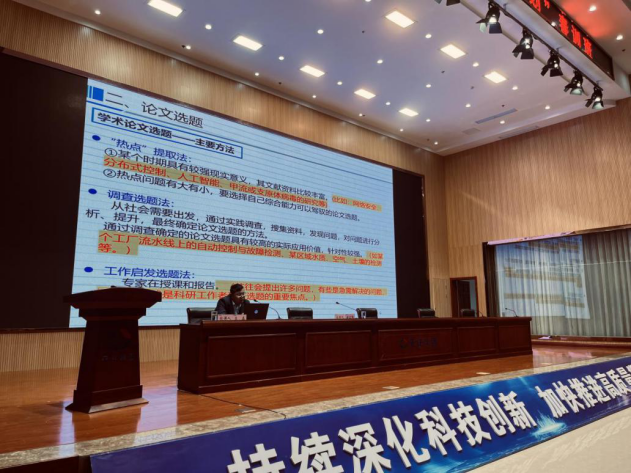 自动化系主任苏磊作为特邀专家前往安徽天康(集团)股份有限公司参加2024年“百人培育计划”春训班,为集团员工作了题为“科技论文写作方法与技巧——以控制理论为例”的专题报告。