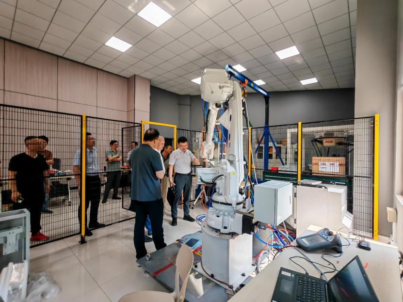 的爱智机器人联合中心,赵卫东详细介绍了中心机器人的技术成果和应用案例,就智能机器人在钢铁制造工艺流程、矿山远程管理技术及其应用与来访专家进行了深入交流。方挺介绍了团队在运用AI视觉技术在各类工业流程中的运用,通过图像处理技术、人工智能算法解决复杂环境下的图像采集、精准识别和精确控制,通过变革传统检测技术的低效率和控制方式,增强各类产线的生产效率和智能化水平;以团队在矿业自动化控制、输电线路故障检测诊断、冷锯定尺切割视觉检测等成功案例,展示了人工智能算法在智慧冶金、智慧生产等方向的应用成果。张辰啸介绍了震动检测在维护大型设备稳定运行等行业成功案例。这些产学研合作典型案例获得了吴江一行专家们的肯定和高度评价。
