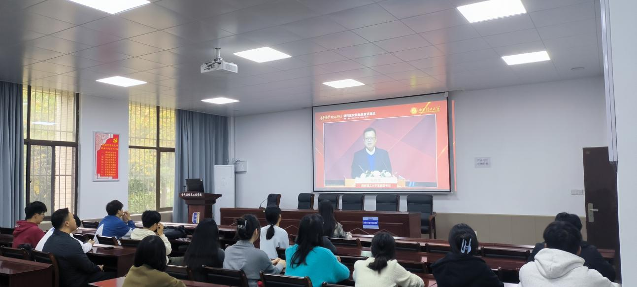 研究生学术型党支部在电气楼113教室组织党员与入党积极分子观看“青春逐梦,榜样同行”全国高校研究生党员标兵宣讲活动。