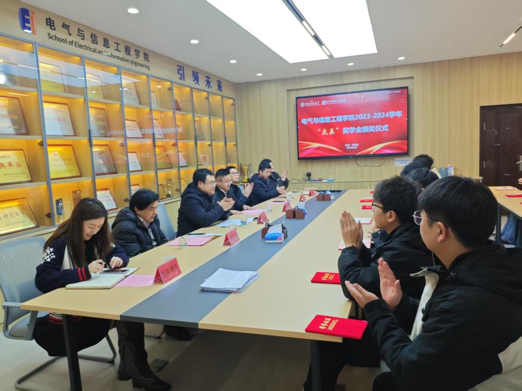 2023-2024学年“众辰奖学金”颁奖仪式在秀山校区电气楼308室隆重举行。上海众辰科技股份有限公司董事会秘书兼财务总监徐文俊、人力资源总监兼运营总监张广良,09届校友代表康林,博彩