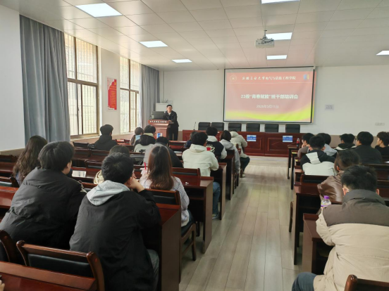 于电气楼113组织召开了2023级班干部培训会,此次培训由2023级辅导员蒋安东老师主持,全体晚就寝签到负责班干部参加。
