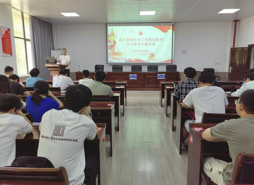 学生测控党支部联合学生电气工程党支部在秀山校区电气楼113教室开展深入贯彻中央八项规定精神学习教育专题党课。党课由学生测控党支部书记杨恒基主讲,支部全体党员和本学期发展对象参加。