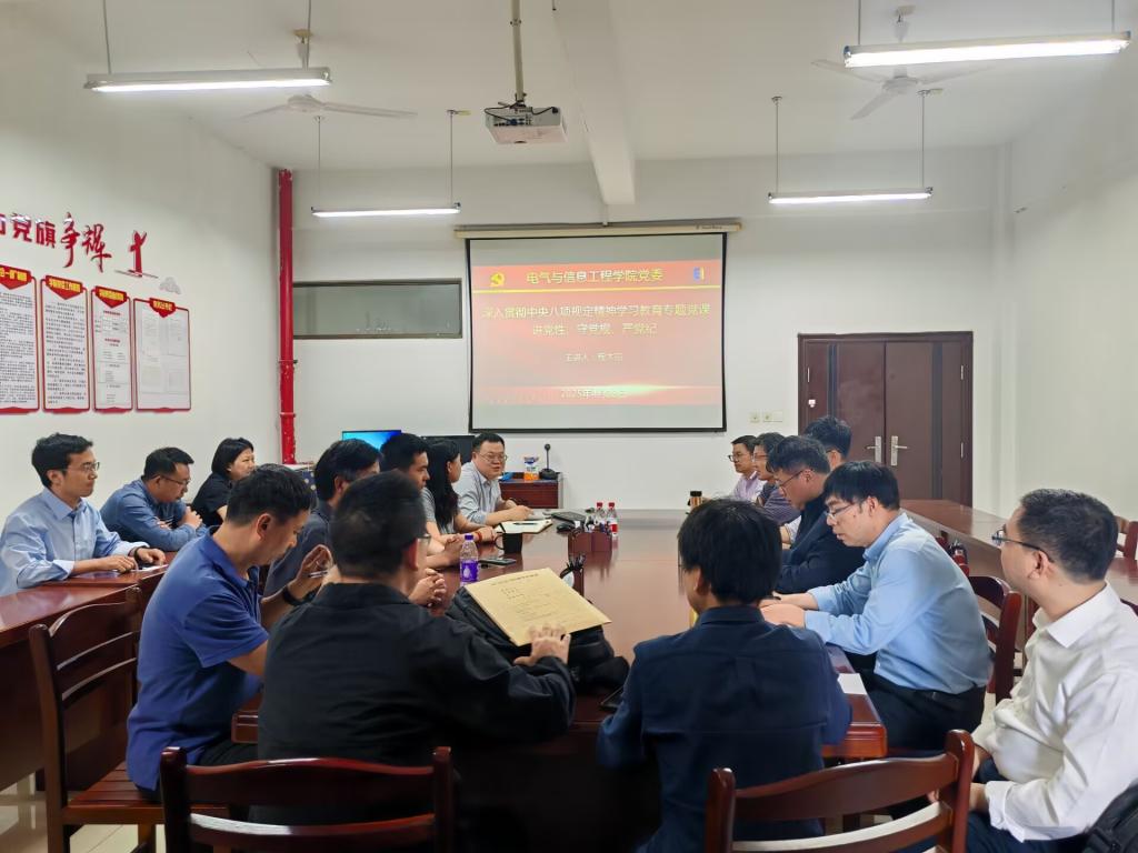 4月28日下午,测控党支部和电工电子党支部联合召开深入贯彻中央八项规定精神学习教育专题学习会,副院长程木田(主持工作)到会指导并讲授专题党课。