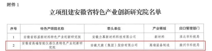 等单位联合共建的“安徽省高端智能仪器仪表特色产业创新研究院”成功获批。
