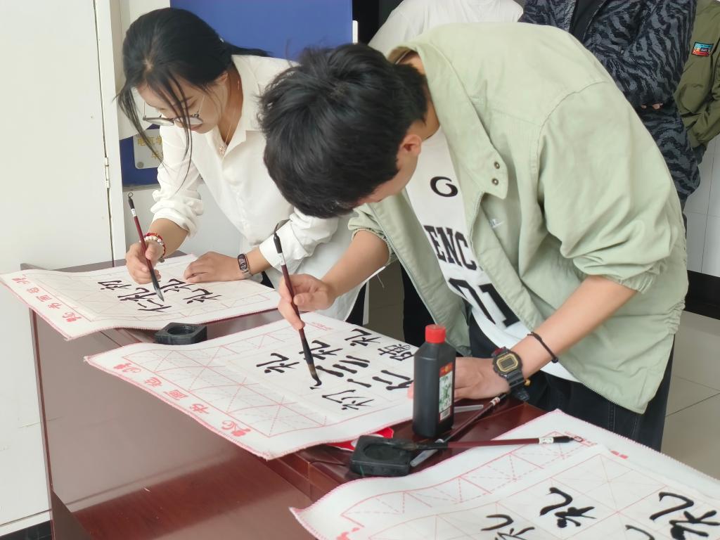 在“翰墨书礼韵 巧剪润初心”实践体验环节,学生党员化身传统文化“手艺人”,以刀笔为媒,沉浸式感受非遗魅力。在书法体验区设有“红色经典临摹角”,党员们执笔临摹红色经典语录与古文经典,“初心”“使命”“不学礼,无以立”等字迹跃然纸上,一笔一画间重温先贤智慧,坚定理想信念。在非遗剪纸区,党员们手中的剪刀翻飞中,传统窗花纹样与“党徽”“红船”“天安门”等红色元素巧妙融合,一张张剪纸作品以匠心刻录文化基因,以巧手传递爱党深情。“剪的是纸,刻的是心;写的是字,铸的是魂!通过亲手创作,我深刻体会到传统文化与党性教育的内在共鸣。”学生党员王毅感慨。