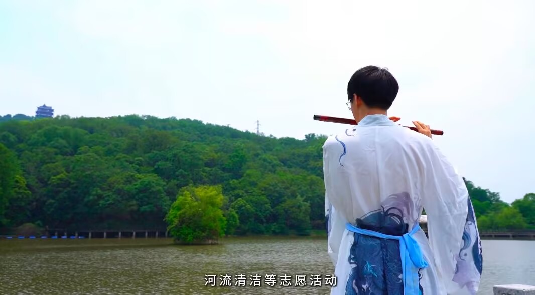 在采石矶景区,“千古一秀”的山水画卷成为思政课的生动背景,学生们结合古代诗词中的生态意象,探讨绿色发展理念的历史根基。诗人薛时雨笔下“江豚吹浪立,沙鸟得鱼闲”的美好长江图景,正通过长江十年禁捕、渔民上岸转产等制度创新得以重现。滔滔江水畔的芦苇荡里,鱼群嬉戏、白鹭翱翔、游人欢笑的和谐画面,生动诠释了“生态惠民、生态利民、生态为民”的实践路径。参与前期调研的主创成员陈贾平同学深有感触:“行走于沉浸式的思政课堂,仿佛能感受到现实与历史的交融,人与自然和谐共生的美好,让我深感责任重大,也促使我们思考如何用专业能力为这份和谐贡献力量。”