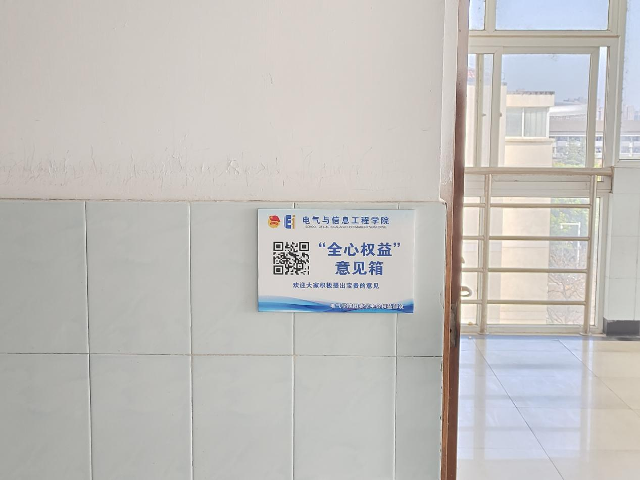 在23级、24级同学居住的A栋、C栋、E栋、K1、K2、L2栋各宿舍楼层楼梯口,统一张贴了专属意见反馈标识牌,同学们只需扫描牌面二维码,即可轻松提交各类诉求与建议。同时,电气楼原有线下意见箱继续保留,以满足不同同学的使用习惯和反馈偏好。后续,博彩