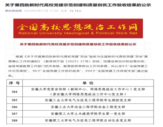 近日,教育部思想政治工作司公布第四批新时代高校党建示范创建和质量创优工作验收结果,博彩