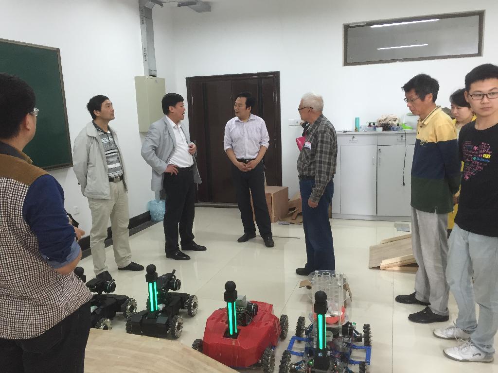 5月10日上午,校长李家新在工程实践与创新中心主任冷护基和院党委书记黄国才、副院长章家岩、郭宏等的陪同下亲临博彩 ,就学生科技创新活动及学科竞赛开展情况进行了专题调研,并与正在积极备战2015RoboMasters全国大学生机器人大赛的同学进行了亲切交流。