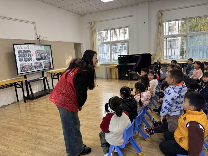 第25届研究生支教团成员侯静静同学担任主讲,安工大幼儿园全体大班的小朋友以及老师们参加了活动。