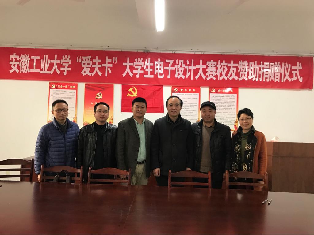 “爱夫卡”大学生电子设计大赛赞助捐赠仪式,深圳市爱夫卡科技有限公司总经理姚勇、学校校友工作处处长单桂峰、博彩