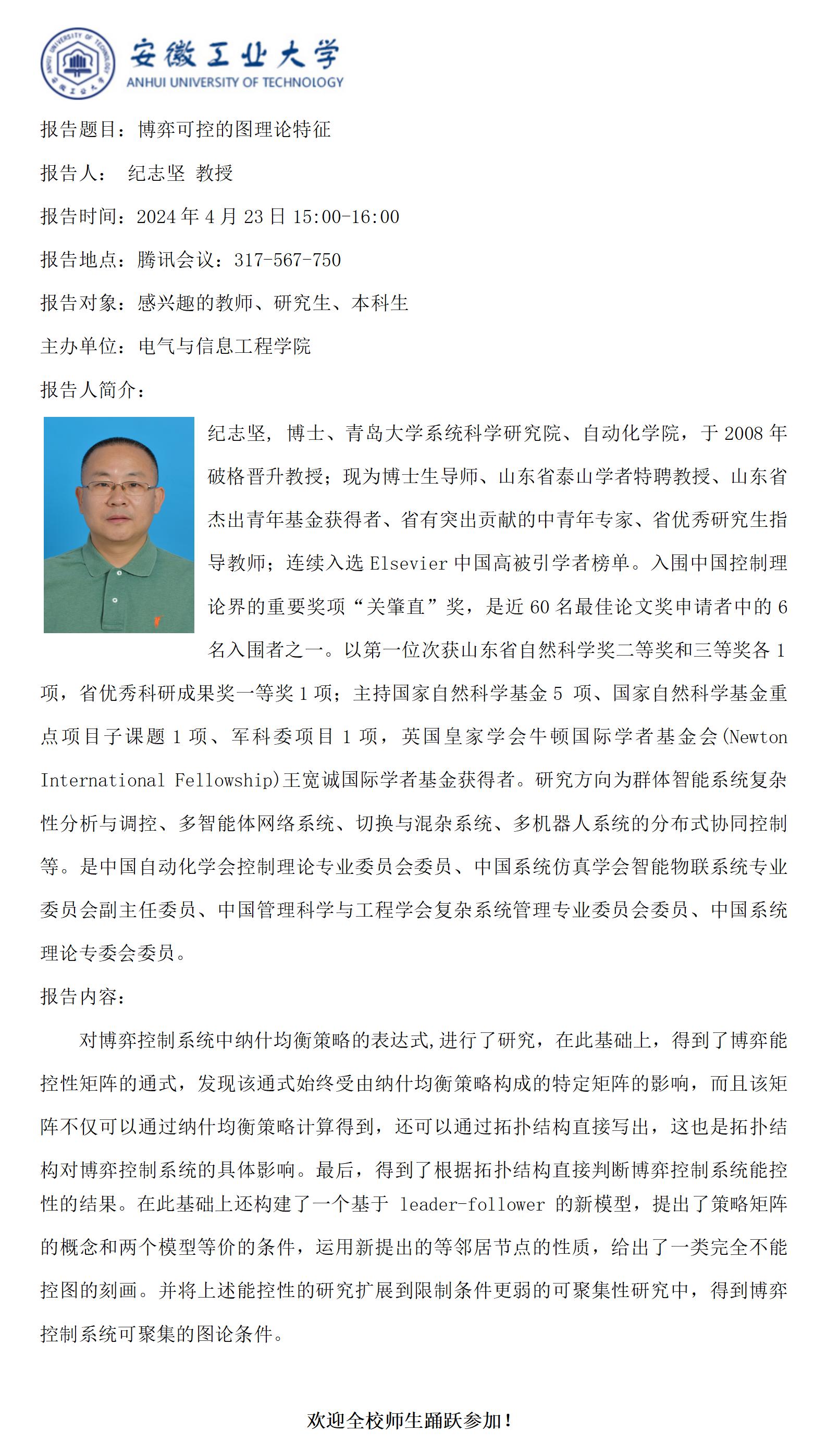 “谦之”学术讲坛之八十二-博弈可控的图理论特征