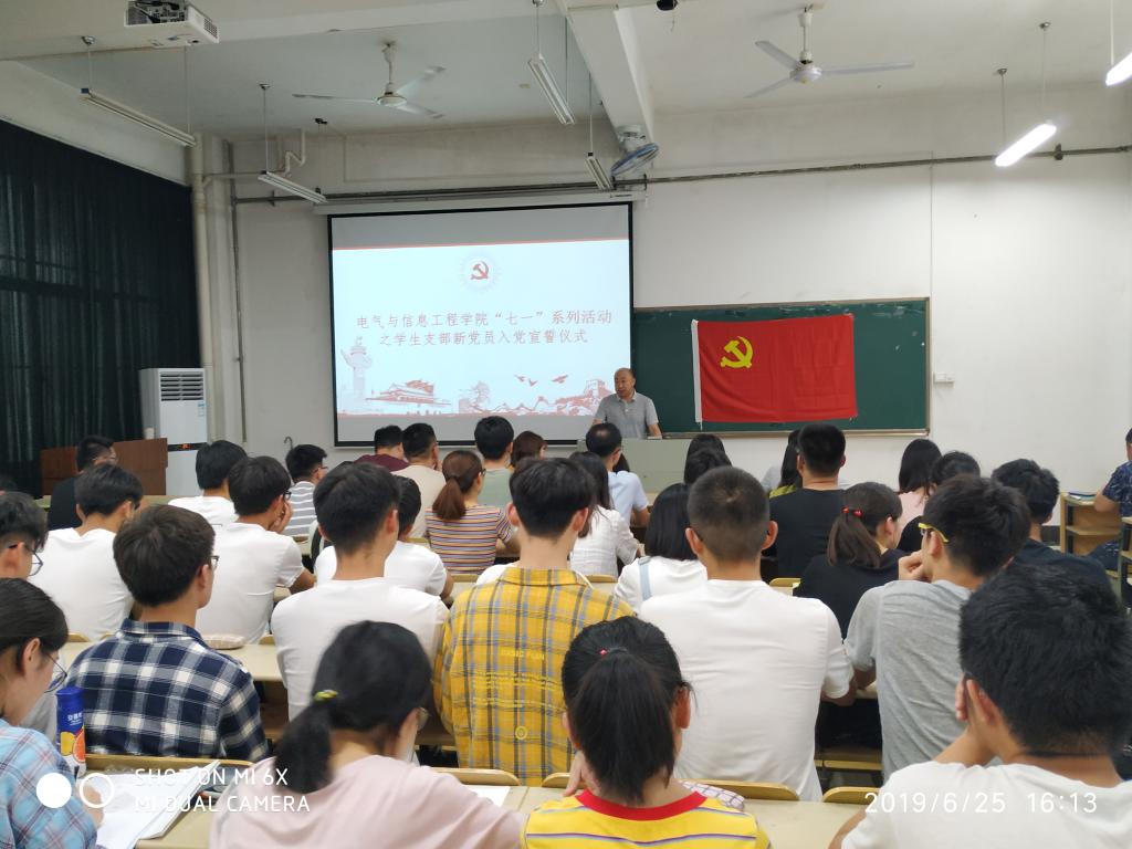625日下午,电气博彩 于电气楼112室举行新党员入党宣誓仪式。院党委副书记郭宏、各学生党支部书记、各年级辅导员、2019年上半年新发展的党员以及全体学生党员参加了仪式。仪式由学生自动化党支部书记张敏主持。