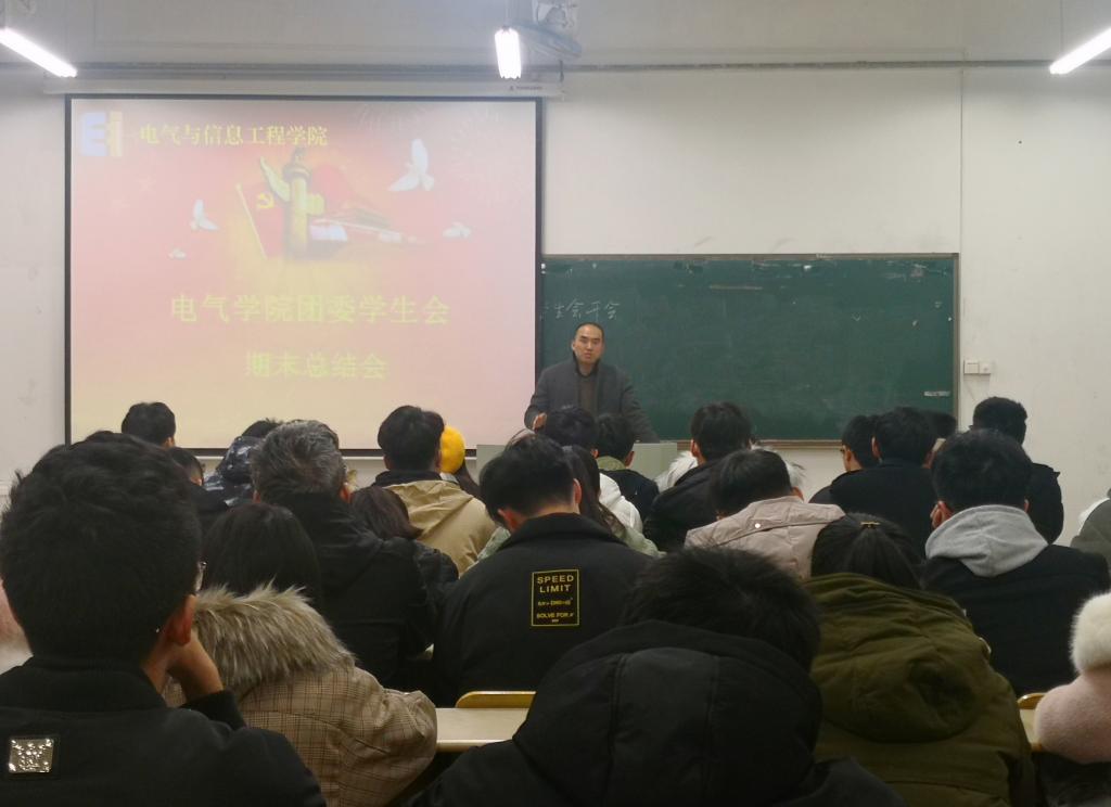 团学工作水平。夏玉钦在总结讲话中表示:本学期,同学们付出很多的努力,取得了很好的成果,电院好的传统要一届一届地传承下来,也要不断的加以创新,活动开展要整体考虑,做到学生乐参与、有收获、成体系、筑品牌。他要求一要增强政治意识和大局意识,提高站位、精确定位,做好老师开展学生思想政治工作的得力助手;二要增强学习意识,加强团学各部门间的总结交流、学习和借鉴,不断提升整体工作水平;三要增强创新求实和服务奉献意识,实实在在地为学生和老师解决问题;四要增强责任和团队意识,发挥好团队的力量。各部门应同心同向同力,相互协作,树立电院品牌,最大限度地发挥团学活动的实效和影响力。最后,他希望,临近期末考试,团学干部要认真组织和落实复习备考,带头遵守考风考纪,收获优异的成绩。