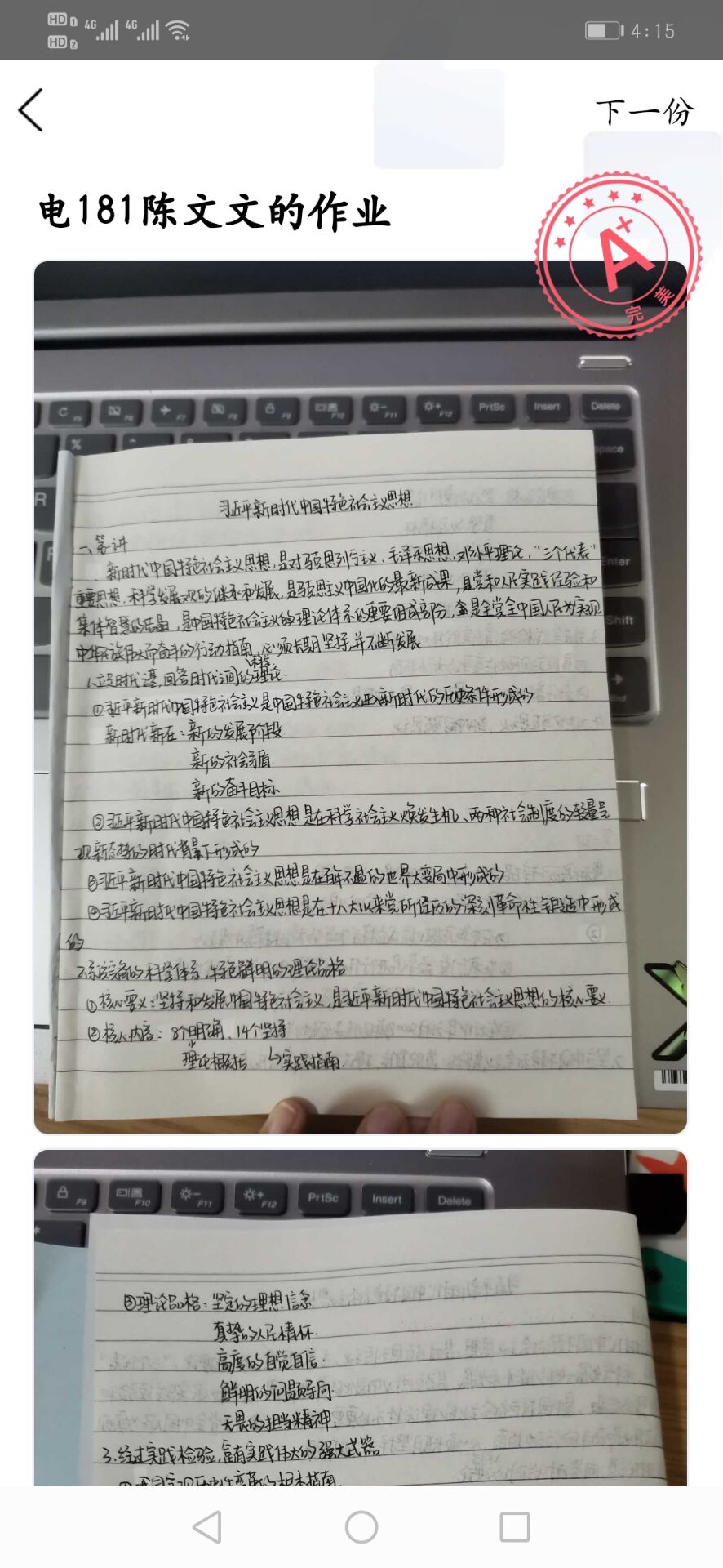 评比前,分党校班主任利用班级QQ群中的作业功能布置上传笔记图片任务,参加培训的53名学员按时全部上传了自己的笔记。评比中采取集中观摩、线上点评等方式进行,标准突出表现为三个方面:一看线上课堂内容把握情况,重点看学员对于线上培训内容是否记得齐全;二看书写认真规范程度,重点看学员书写是否认真细致;三是看学员态度及思想状况,重点看笔记后是否有思考小结、是否有心得体会。一张张学习笔记图片,书写工整,字迹娟秀,充分展现了学员积极学习、乐于思考、认真细致的"精气神"。线上点评的过程中,学员们纷纷表示:写笔记不止是一种形式,更是一种精神,一种热忱,一种感悟,不仅用传统方式让大家重温了书写的乐趣,也在记录的过程中提升了自己的理论水平。