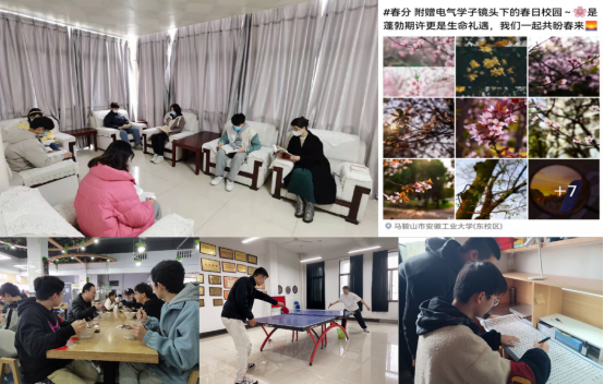 以疫情为教材,以校园抗疫战场为育人课堂,强化教师主导性和学生主体性作用,创新打造“师生成长共同体”。组织“好书共读”:师生互相推荐专业相关、疫情相关的经典书籍,通过“日日读、细细品、深深悟”的共读时间来认识世界、读懂中国、启迪智慧、润泽心灵,注重引导学生思考在全民战“疫”中如何发挥供电保电、智能感知、无线通讯等专业知识的力量;推进“美食共享”:启动辅导员与学生面对面的约饭畅谈节奏,聊网课学习的效果与问题,讲班级建设的方法与路径,谈个人的职业规划与人生梦想……畅谈之余,辅导员晒出与同学们每日三餐的各种美食图片,提倡自觉增强防疫意识,不点外卖不网购,远离垃圾食品,相约在食堂遇见更香的饭菜、遇见更好的自己;落实“身心共健”:辅导员与学生互勉疫情期间要加强体质锻炼,开展球类、跑步等运动,田径场的跑道上、球拍的击球声里,师生同台竞技,尽显青春活力。同时,辅导员利用新媒体平台坚持推送疫情防护科普知识,并组织学生以宿舍为单位在保证规律作息的基础上开展书法、绘画等形式多样的文艺活动,既缓解心理压力,又挖掘学生特长;倡导“春景共赏”:驻校教师带领学生漫步校园,欣赏春日校园美丽风光,讲解学校和博彩