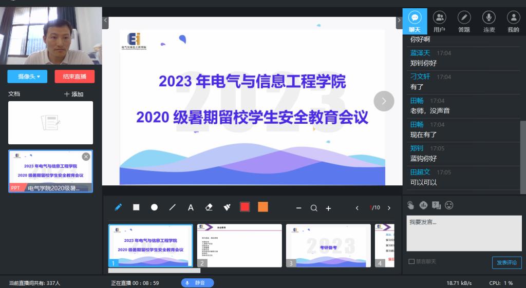 为切实提高暑期留校学生的安全防范意识,保障2023年暑假留校工作有序开展,7月3日下午,电气博彩 召开了2020级暑期留校学生安全教育工作会议,2020级辅导员孔洋波、芮靖、汤敏以及全体留校学生参加了此次会议。