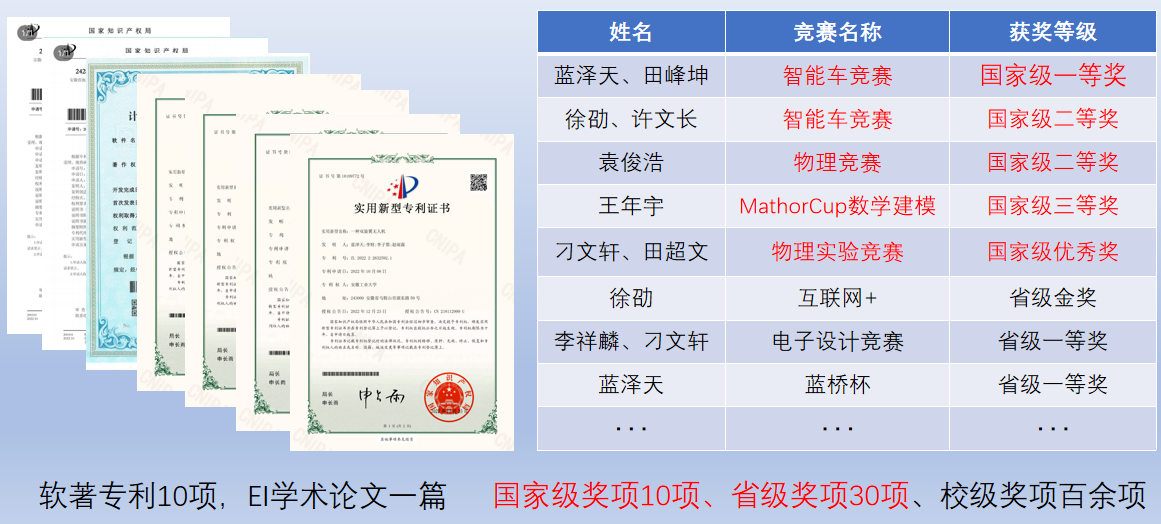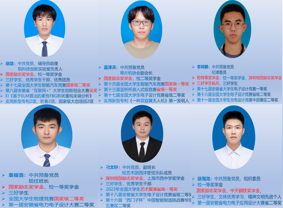 领导的关心关怀下,在辅导员、班主任及全体同学的努力下,自201班抓引领、固根基、正风气、蕴内涵,打造了一个有信念底色、有担当本色、有发展成色、有青春亮色的集体。班级入党申请书提交率100%,入党积极分子26人,预备党员10人,均为全院最高。班级连续3年获得“先进班集体”、“五四红旗团支部”等荣誉称号。班级同学发表EI学术论文1篇,在各类科技竞赛中获国家级奖项10项,省级奖项30项,校级奖项100余项,软著专利10项,国家级大创6项,省级大创10项。班级四级通过率100%,计算机省二级通过率100%,今年,自动化专业推免名额共6个,6个名额全部花落该班。三年来班级同学0处分、0违纪、0安全事故,0学籍处理。