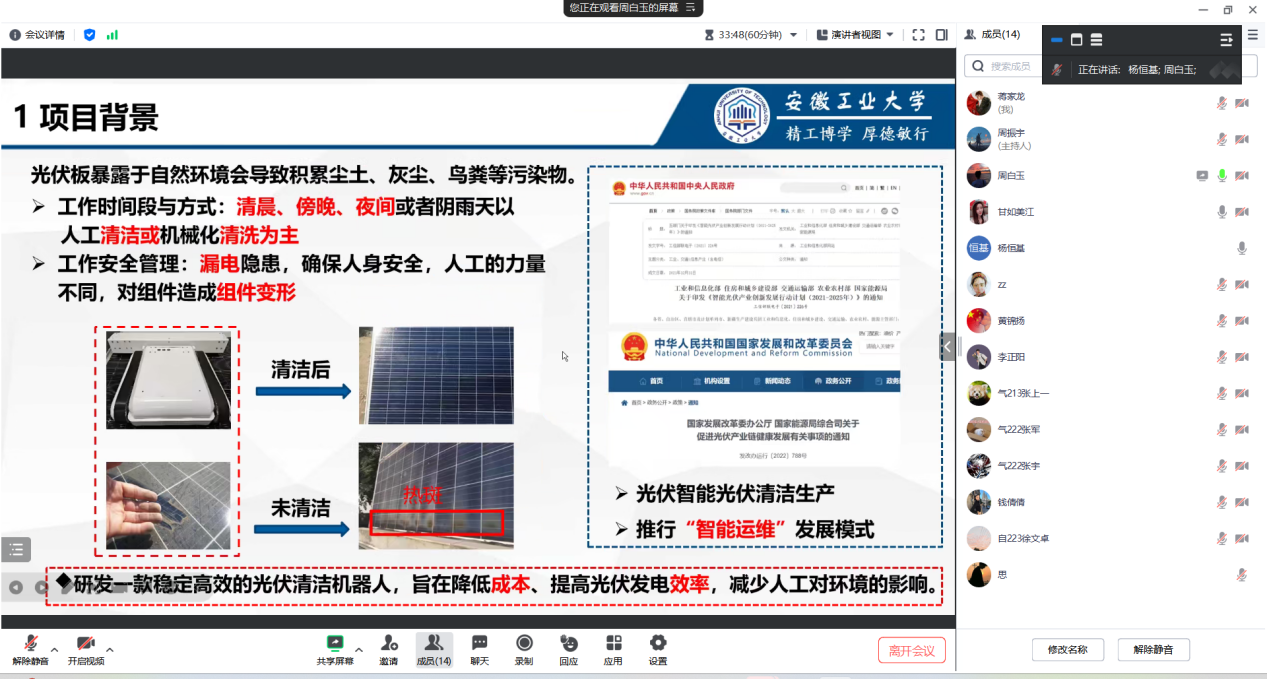 、学校权威专家对参赛作品进行赛前指导,参赛团队师生也在积极备战、不断完善作品。寒假中,院团委将继续组织入围项目线上模拟答辩活动,为参赛学生团队提供赛事政策解读与答辩指导,帮助学生及时检测自身的不足,赢在寒假,为即将到来的校赛做足准备,力争优异成绩。