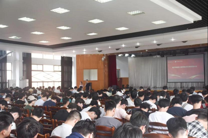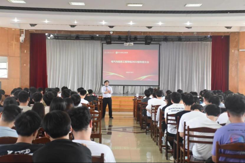 2022级年级大会。院党委副书记、纪委书记、副院长李克明、2022级辅导员李修正、甘如美江、杨恒基及全体2022级同学参加会议。