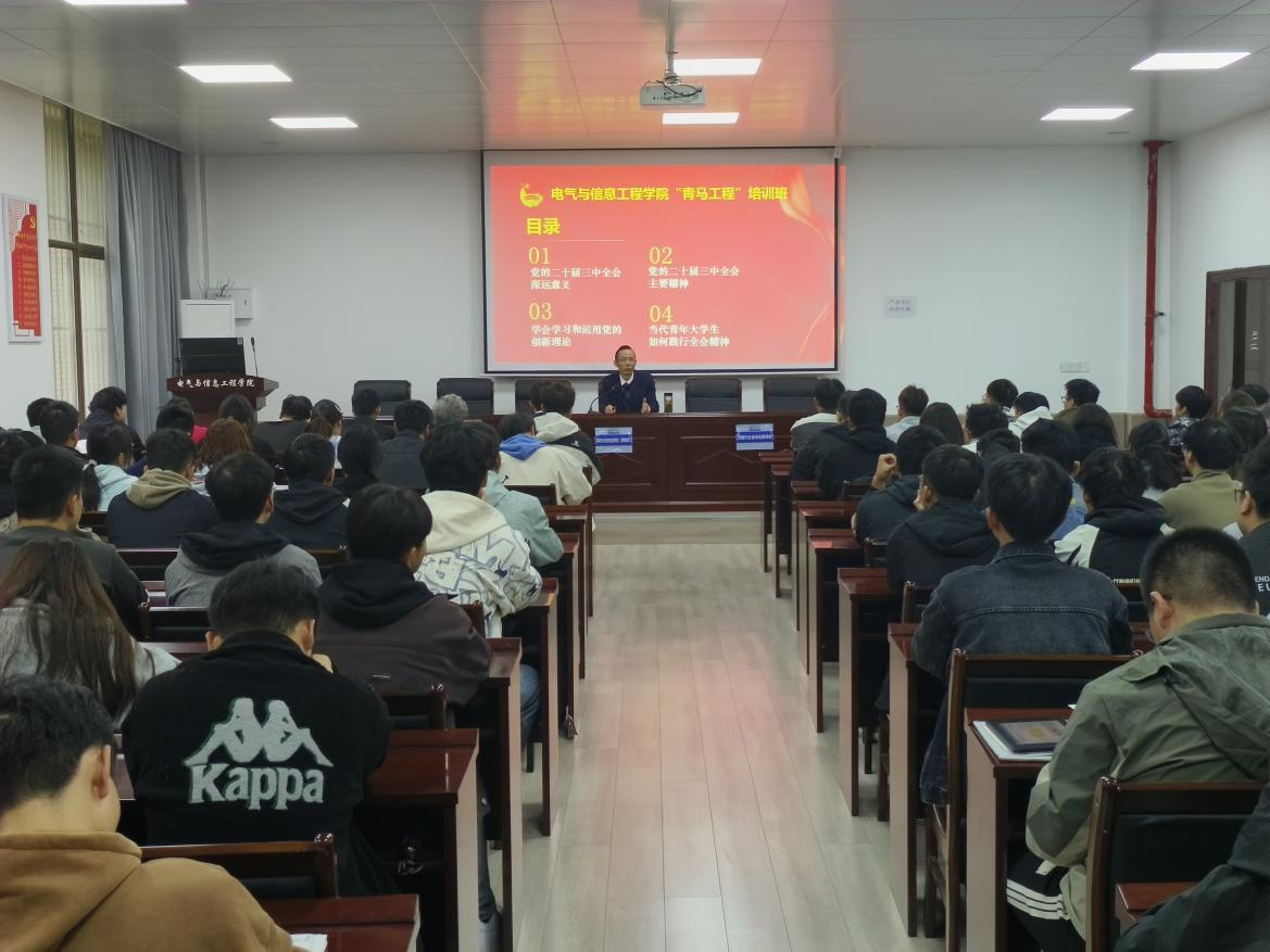 为深入学习贯彻党的二十届三中全会精神,全面贯彻落实习近平总书记关于青年工作的重要思想。10月26日上午,博彩 在秀山校区电气楼113教室举行2024年度“青马工程”培训班暨“红色初心”铸魂专项行动启动仪式,会议邀请博彩 党委书记丁忠利主讲党课,博彩 团委和学生会干部、各班学生代表参加活动,博彩 学生测控党支部书记杨恒基主持。