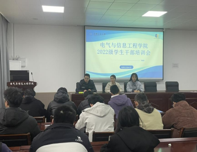 在电气楼113召开2022级学生干部培训会。会议由2022级辅导员甘如美江、杨恒基、孔瑜琦共同主持,2022级各班主要学生干部参会。