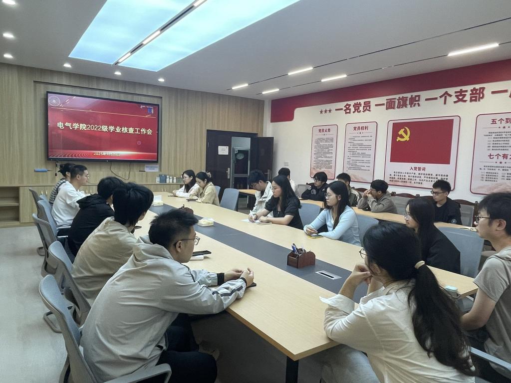 在电气楼308召开2026届毕业生学业核查工作专题部署会。会议由2022级辅导员杨恒基、孔瑜琦共同主持,博彩