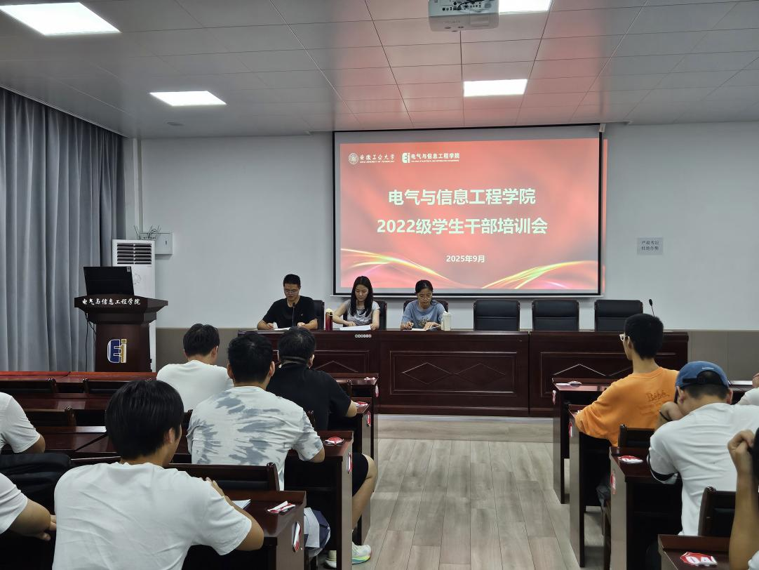 在电气楼113召开2022级学生干部培训暨就业推进会,会议由2022级辅导员甘如美江、杨恒基、孔瑜琦共同主持,2022级各班主要学生干部及就业联络人参加。